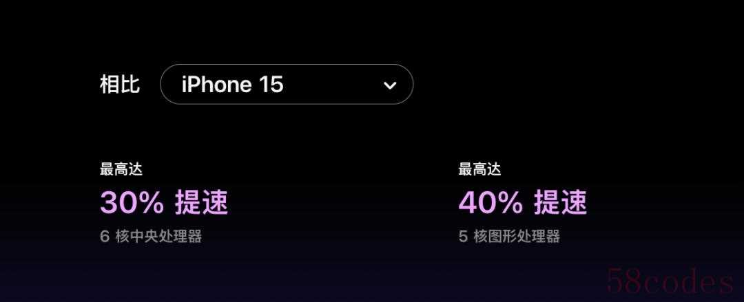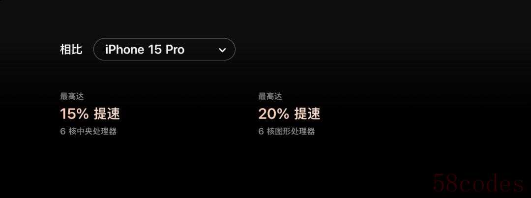 与A17 Pro芯片相比,其6 核中央处理器提速最高达15% ,6 核图形处理器提速最高达20%。