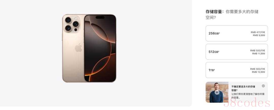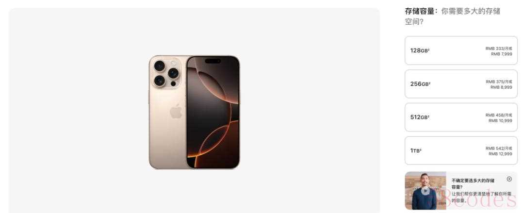 iPhone 16 Pro,128GB 版本7999元、256GB 8999元、512GB 版本10999、1TB 版本12999元。