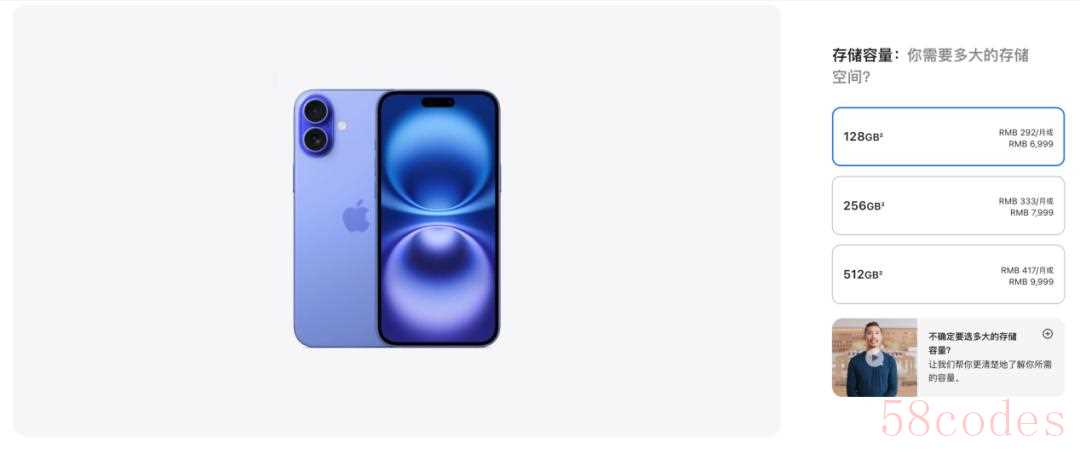 iPhone 16 Plus,128GB版本6999元、256GB版本7999元、512GB版本9999元。