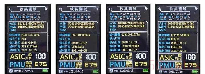 上述4条A to L普通线的仪器检测图,均显示原装,100分,E75芯片