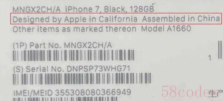 Phone 7包装盒背面的标签,红框内字体和格式与USB-C to Lightning一致
