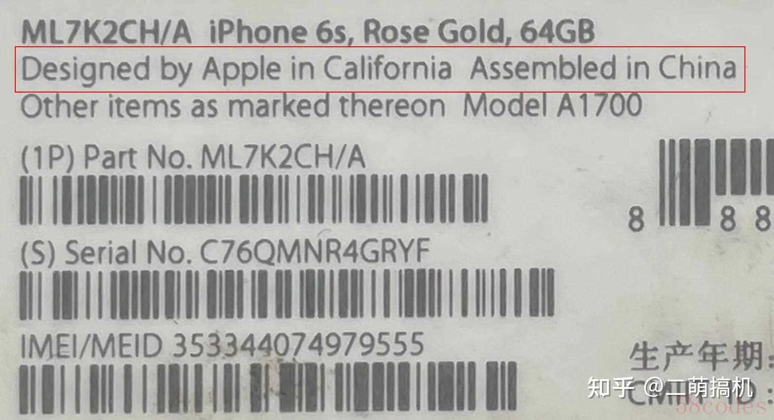 iPhone 6S包装盒背面的标签,红框内字体和格式与USB-A to Lightning一致