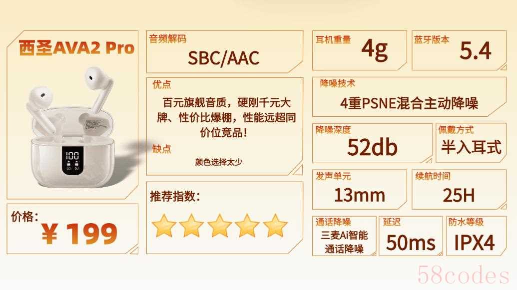 品牌1、西圣AVA2 Pro蓝牙耳机