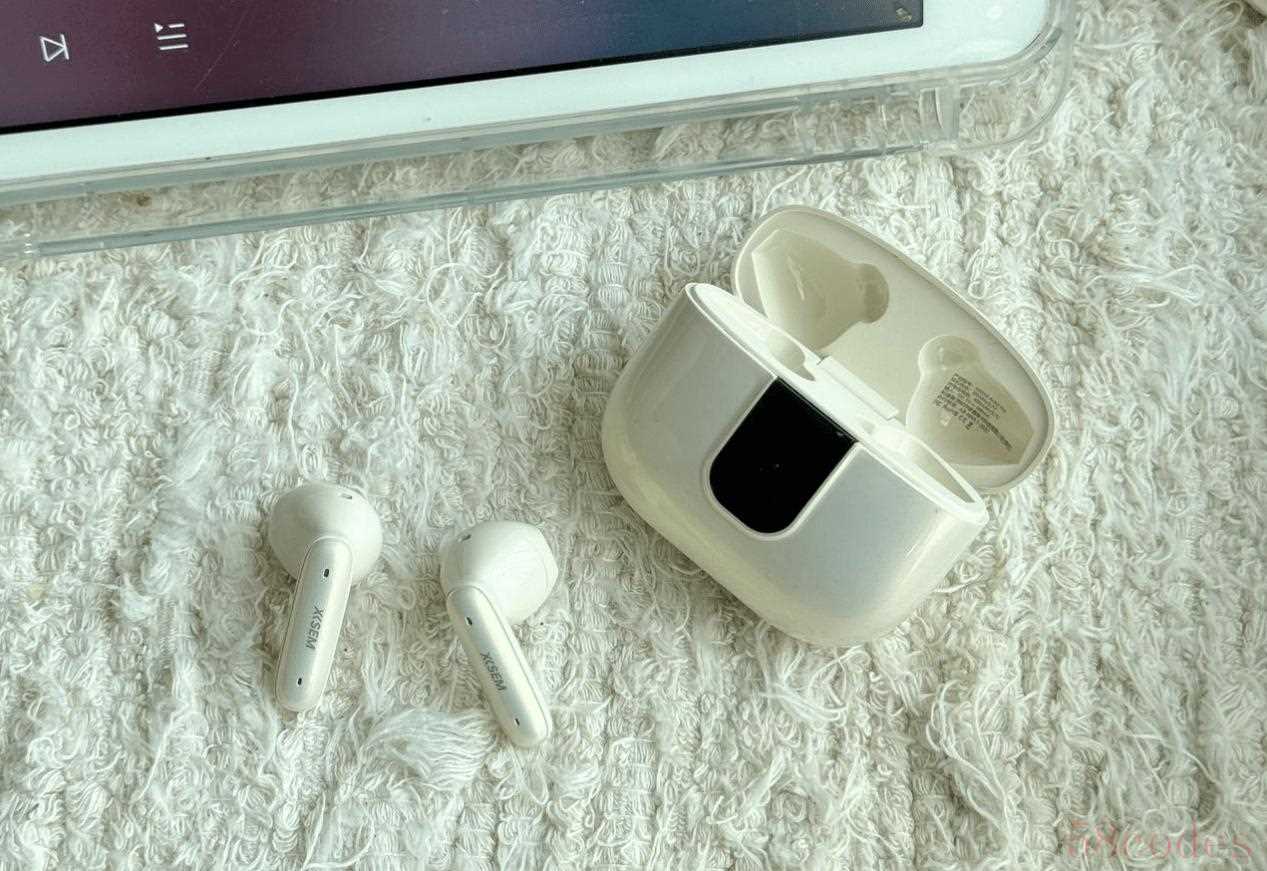 这款耳机主打轻盈,单只耳机只有4.2g,戴上之后几乎没有压迫感。充电盒则走的是鹅卵石设计,圆润顺手,既好看又便携,揣兜或放包里都不占地方,拿取也很顺手。