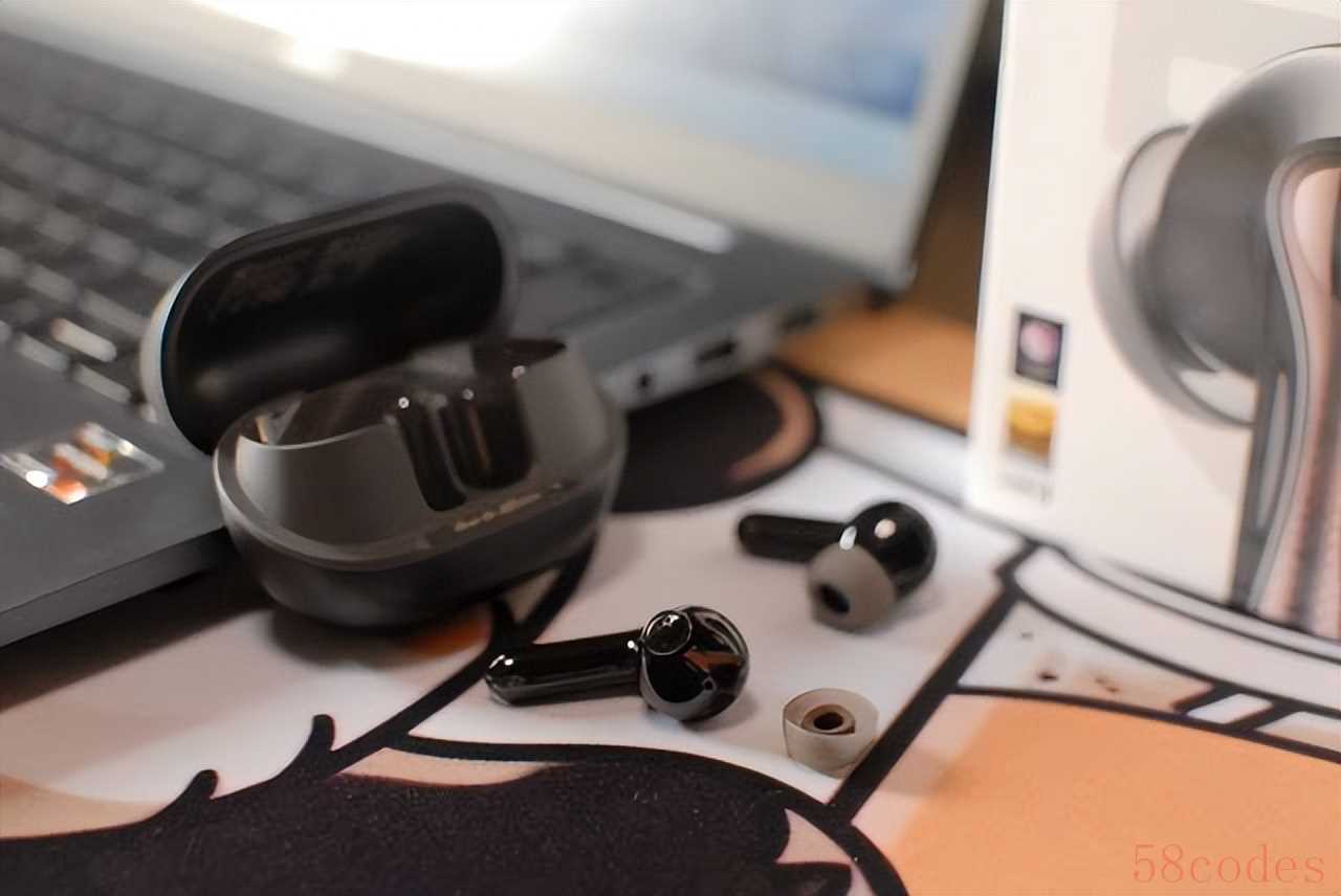这款耳机在外观设计上颇有科技潮流感,滑盖式充电盒加上数字屏显与Touch Bar触控条,既提升了操作体验,也增强了辨识度。耳机采用30°斜入耳设计,搭配不同规格的耳套,单只约5.5g,整体佩戴轻盈贴合,长时间佩戴也不会过于疲劳。