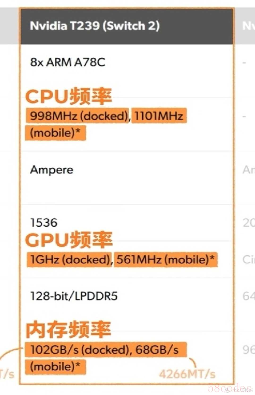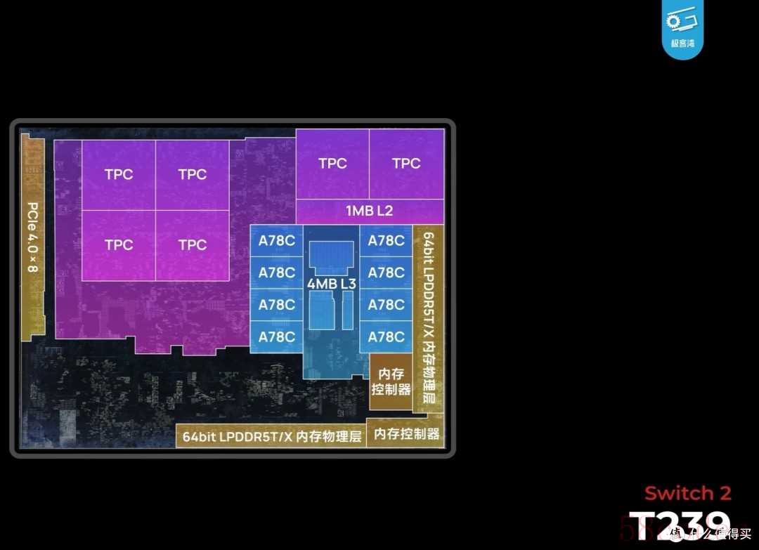 最后我们再看看制成和核心配置方面,Switch2这颗T239采用的是三星10纳米改进制程(10纳米混合8纳米)CPU 采用8颗A78,GPU为安培架构,包含1536个CUDA。