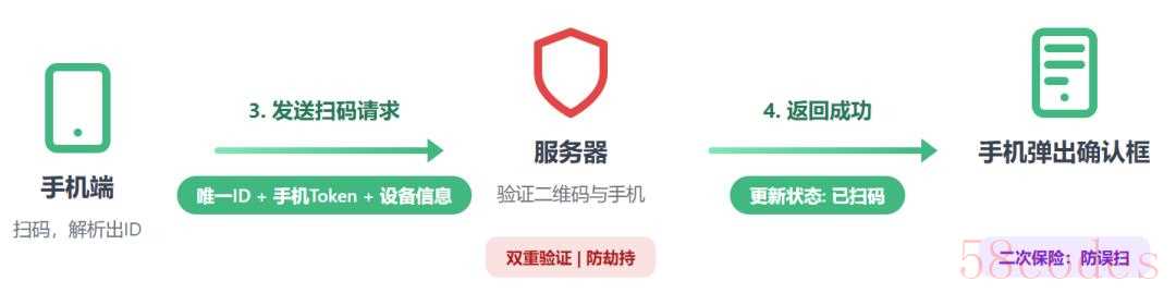 - 安全请求:手机向服务器发送验证请求,包含二维码ID和设备信息