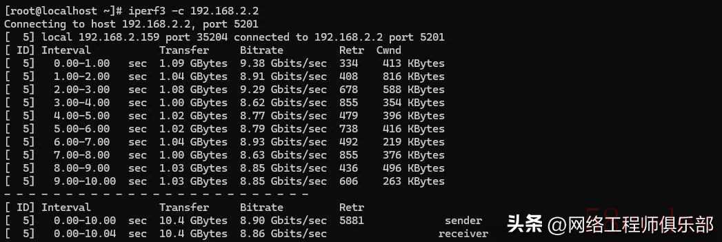iperf3 实用程序是一种常用的网络测试工具,用于测量两个系统之间的网络吞吐量。