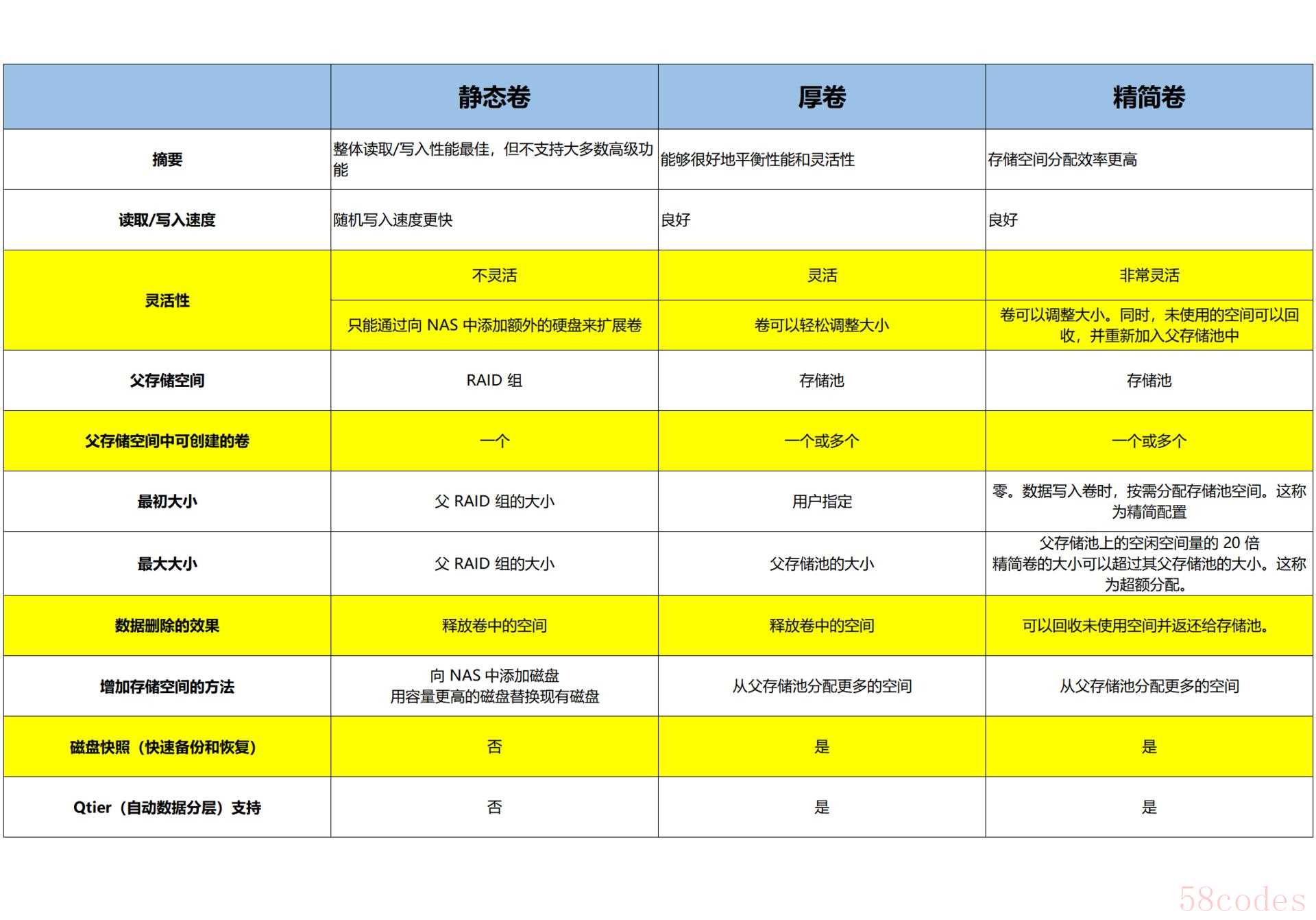 - 静态卷:适合放置对磁盘性能要求高的应用或文件,例如作为下载盘,或者用于存放虚拟机的硬盘。不支持快照。