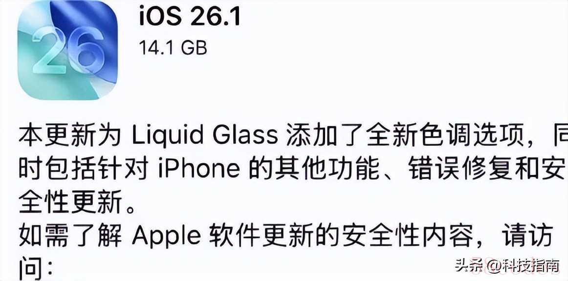 “立即升级,防范攻击风险!”11 月 4 日,苹果向 iPhone 11 及以上机型推送 iOS 26.1 正式版,这场覆盖近 50 个安全漏洞修复的更新,因字节跳动团队贡献 4 个高危漏洞发现引发热议。新增的液态玻璃透明度调节让网友直呼 “终于妥协”,但续航暴降的吐槽与国行 AirPods 实时翻译功能的缺失,也让这场更新成为技术创新与用户体验的 “双面镜”。结合最新实测数据与合规分析,我们逐一拆解更新背后的关键问题。