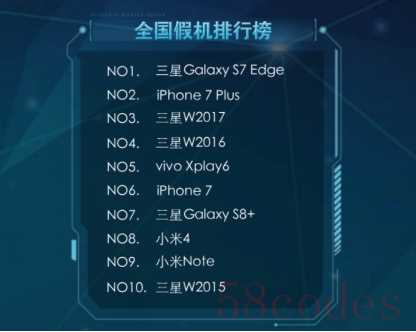 在假机TOP10中,除了前面提到的几款占比最高的,我们也很意外地看到一些此前很少在排行榜中出现的新面孔,如vivo Xplay6,OPPO R9s,甚至魅族PRO 6 Pro Plus。由此可见,vivo 和 OPPO 的确是市场宠儿,假机市场也有相应的表现。魅族在去年较为低迷,在假机排行中能看到确实略为意外,这说明了什么?大家可以自行猜度。
