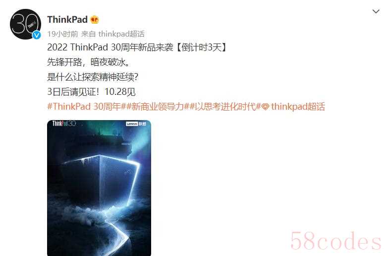 今日,ThinkPad官方在微博上宣布ThinkPad 30周年纪念新品将在10月28日发布。