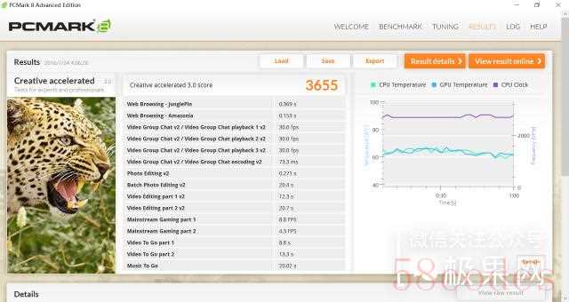 ▲PCMark 8 Creative accelerated 3.0得分为3655。