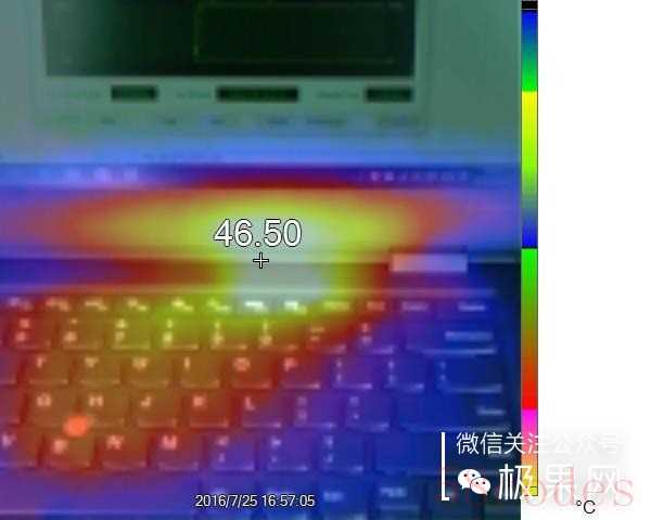 ▲CPU满载时,正面最高温度为46.50摄氏度。