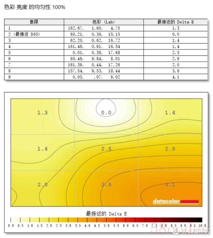 在色度一致性上,ThinkPad X1 Carbon 2019的2号区域最接近标准色度,色差最大的位于9号区域,差值为4.1。