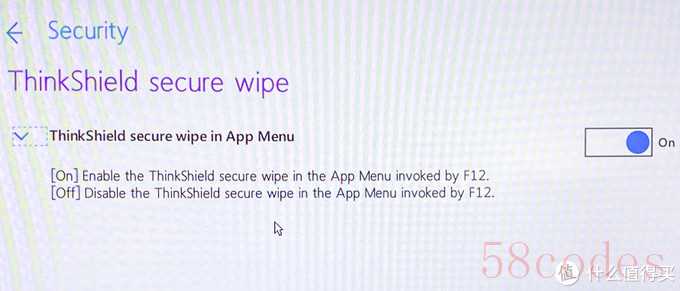 如 ThinkShield 安全擦除功能(Secure Wipe),如果需要清理硬盘数据时,无需通过外部介质或软件来格式化硬盘,直接可以在BIOS中完成固态硬盘的数据删除,最大限度的保障商务人士的数据安全。
