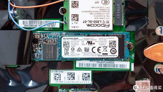 ThinkPad X1 Carbon 2019的PCI-E硬盘为东芝的固态硬盘(M.2插槽),型号为KXG6AZNV512G,目前没能查到更多的参数信息,看到采用的是南亚易胜的缓存,应该是两颗256GB的闪存颗粒。