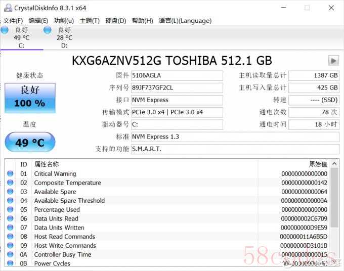【固态硬盘】:ThinkPad X1 Carbon 2019采用的是东芝的固态硬盘(M.2插槽),型号为KXG6AZNV512G,传输协议为NVMe 1.3。