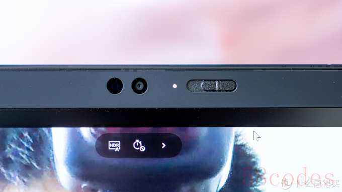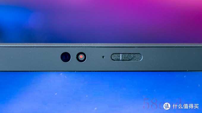 屏幕的顶部是红外LED灯、麦克风和用以支持红外人脸识别的摄像头,ThinkPad X1 Carbon 2019为了保障用户安全还设计了 ThinkShutter 黑阀,可以手动横向开关摄像头遮罩,避免隐私泄露。