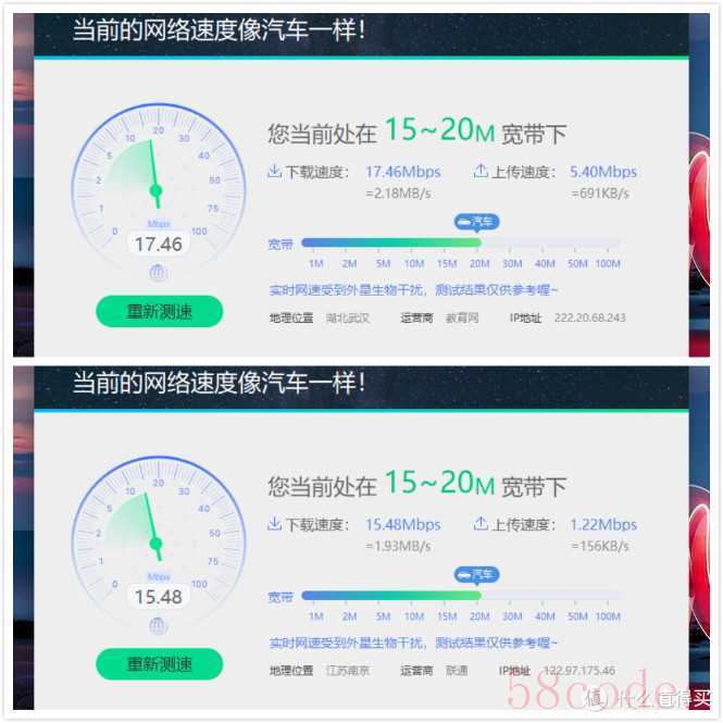 实测下来,在办公室的场景中,一般WiFi的稳定性和速率是要略优于4G蜂窝网络。可以看到华科的校园网(武汉)下载速率在17.46Mbps,上传速率在5.4Mbps。而ThinkPad X1 Carbon 2019所搭载的南京联通4G上网卡,下载速率在15.48Mbps,上传速率1.22Mbps。而到了户外场景中,就完全是LTE模块的天下,WiFi就没有信号,完全靠4G蜂窝网络发挥作用。