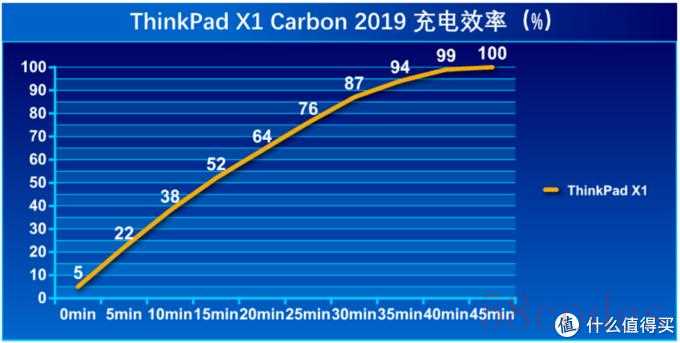 实测ThinkPad X1 Carbon 2019使用原装充电器进行一次完整充电仅需45分钟,整体的充电效率比较高。