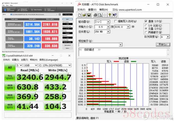 这块东芝固态硬盘的读写速率相当强悍,通过软件测试,理论读取速率峰值为3280MB/s,写入速率峰值为2953MB/s,妥妥的旗舰水准,值得表扬。