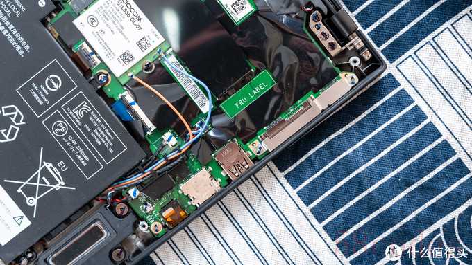 ThinkPad X1 Carbon 2019的接口集中在左侧,此处主板的走线分布较为密集,同时还覆盖有用以屏蔽的膜。
