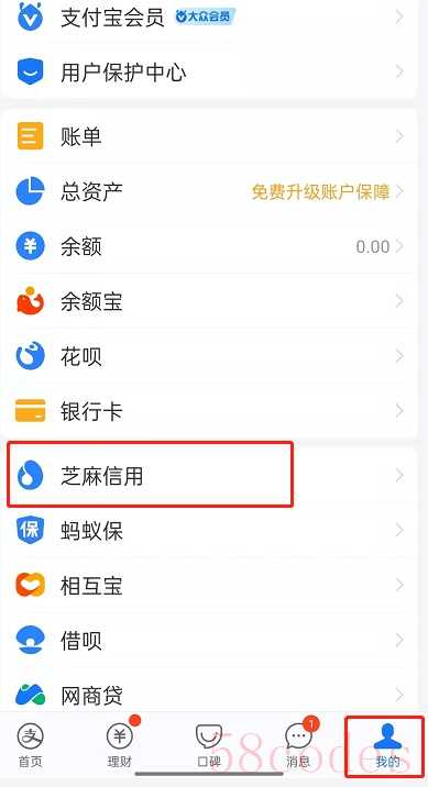 1、打开支付宝应用,点击我的,进入芝麻信用。