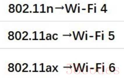 在说2.4G和5G频带之前,我们先简单了解一下WIFI的类别,Wi-Fi联盟之前给Wi-Fi重新命名了,802.11ax协议就是Wi-Fi 6,802.11ac就是Wi-Fi 5,802.11n协议是Wi-Fi 4。