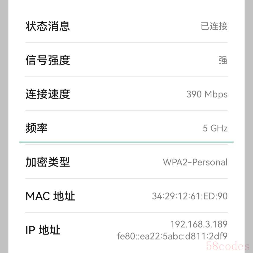 以华为手机为例,进入【设置】→【WLAN】,点击当前连接的 Wi-Fi 名称,即可Wi-Fi 频段;