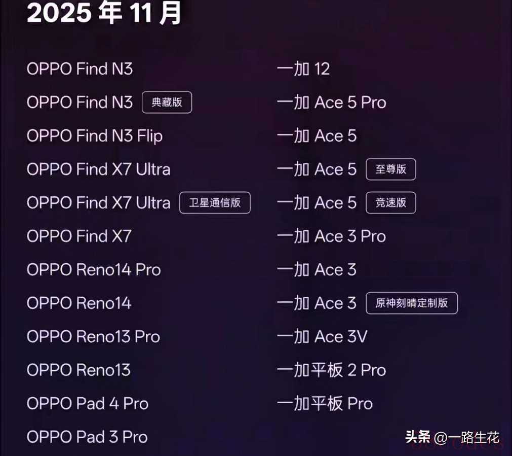 · 11月份:OPPO Find N3系列、Reno 14系列、OPPO Pad 3 Pro等