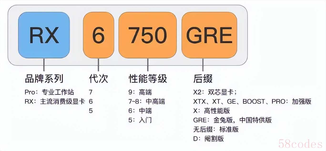 RX:Radeon RX系列,AMD的主流消费级显卡;