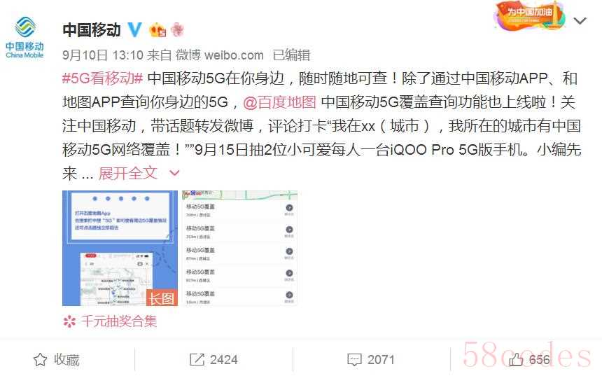 【环球网科技报道 记者 林迪】近日,记者从中国移动官微了解到,中国移动5G信号新查询方式上线,即除了通过中国移动APP、和地图APP查询身边的5G,用户可打开百度地图直接搜索“5G”,查询中国移动5G网络。