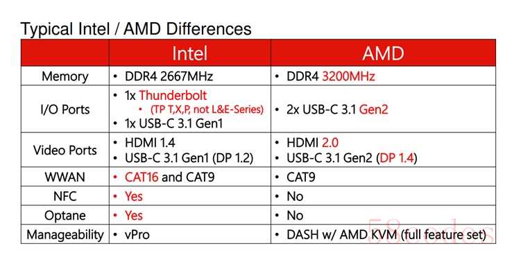 IT之家注意到,除去几款高端机型和变形本产品之外,其余几乎都可选AMD处理器。根据官方的文件,英特尔和AMD版本在设计上有一些差异。AMD版本搭载的内存频率更高,而英特尔版本则是拥有雷电3接口。AMD版本的搭载了更快的USB-C 3.1 Gen 2接口、更大带宽的HDMI 2.0接口,全功能Type-C中也集成了更快的DP 1.4,从而实现更好的显示输出。