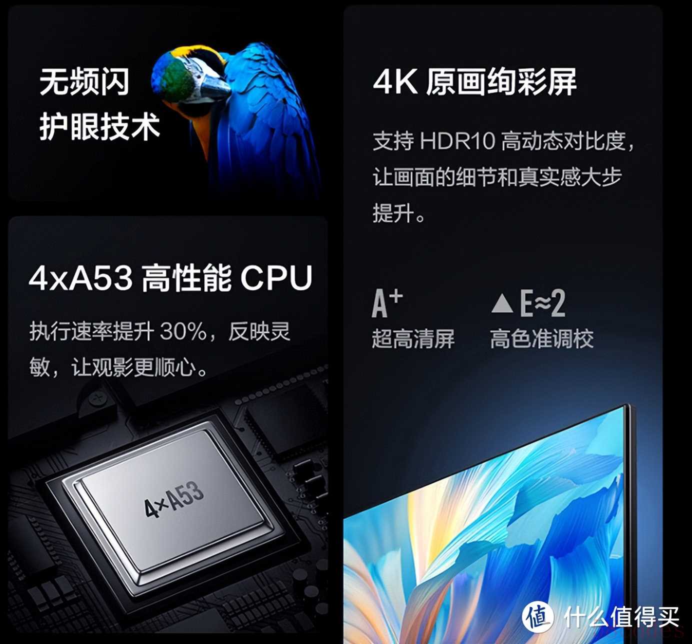 这款电视的屏幕还是不错的,4K分辨率,10.7亿色彩显示,日常看电影电视足够了。