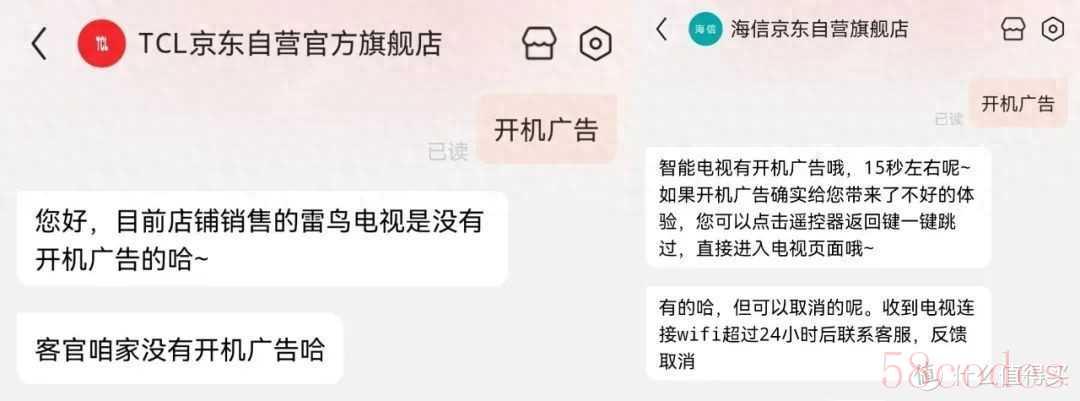 这时候客服会非常客气地和你说一些理由或者建议,比如开机之后给自己倒杯水,广告就播完了,或者说他们家的电视支持一件关闭广告,只需要在开机之后按一下遥控器返回/退出就可以。