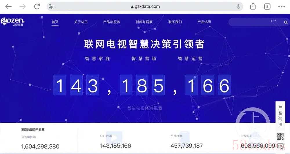 此前,勾正数据官网发布其用户使用大致数据,声称其智能电视终端超过1.4亿台(图源:勾正数据官网截图)