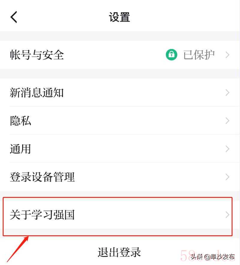 第三步,进入“设置”界面后,点击下面的“关于学习强国”,如下图所示。