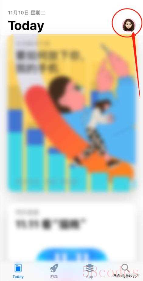 IOS系统第一步,打开手机App Store,点击右上角头像图标。