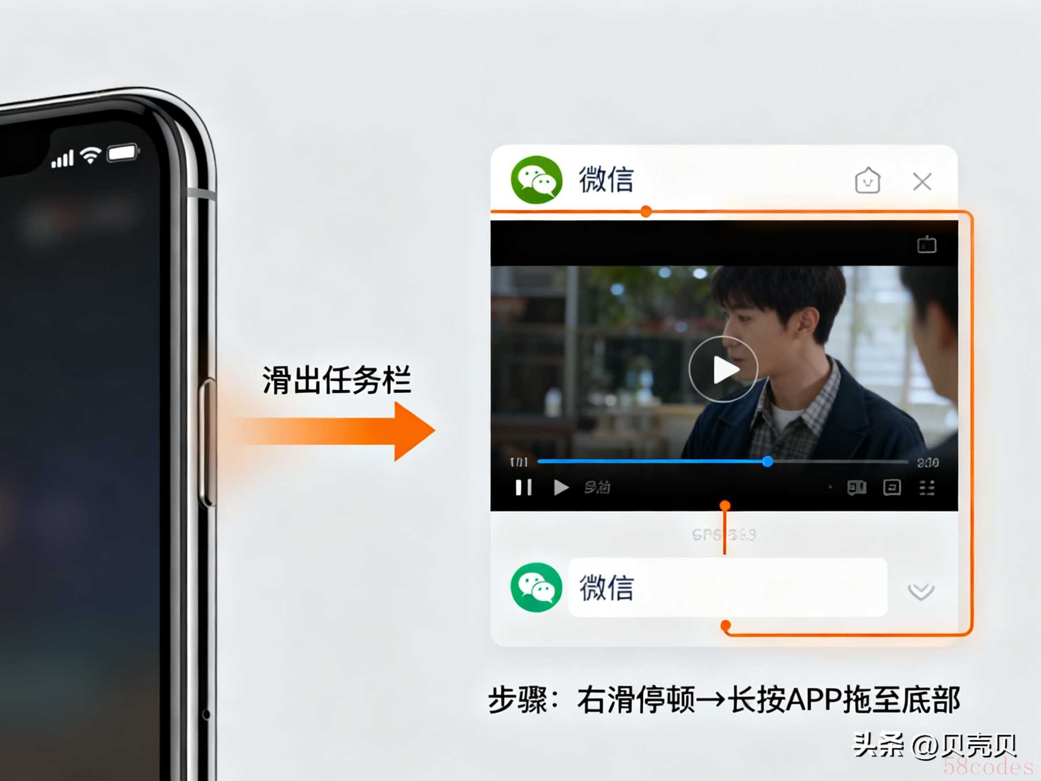 方法 1:侧边滑出任务栏,边追剧边聊天(上下分屏)