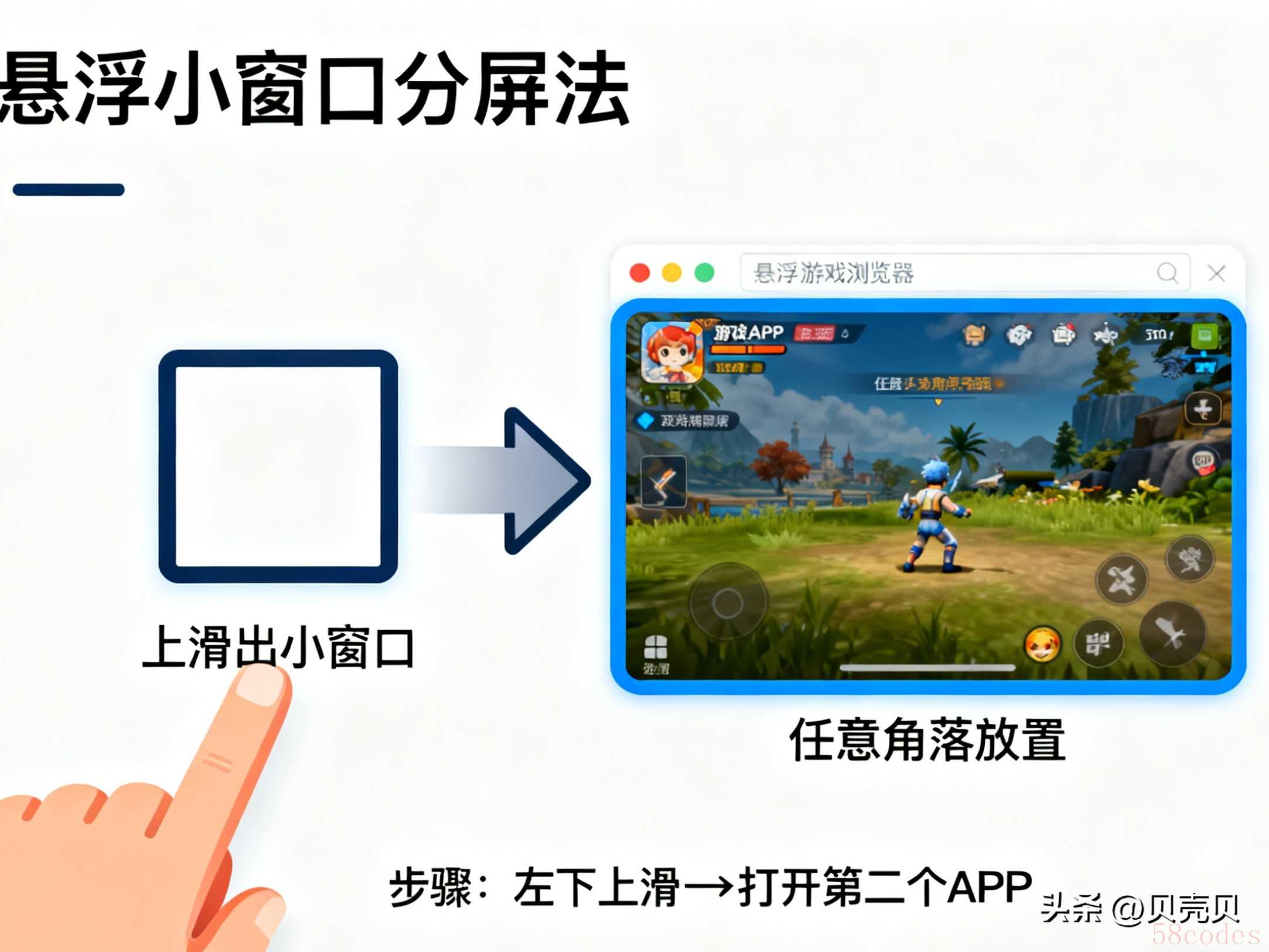 方法 2:左下角上滑出小窗口,边游戏边看攻略(悬浮分屏)