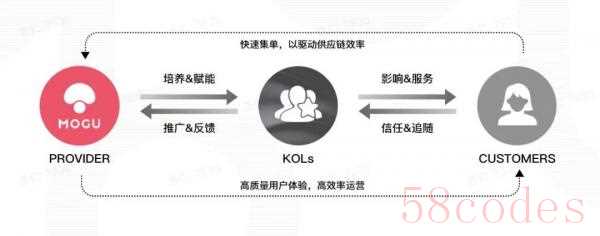 而对于人货场关系,蘑菇街的逻辑是P2K2C。P指的是Provider,包括蘑菇街官方找的卖家、供货商,以及蘑菇街撮合主播对接的商家;K是KOL,包括早期的社区达人,也包括后来的主播;C便是消费者。
