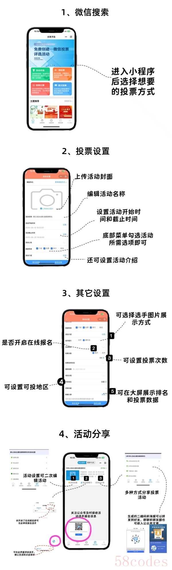 "优点:" 操作简单,微信官方支持,投票结果会自动统计并展示。