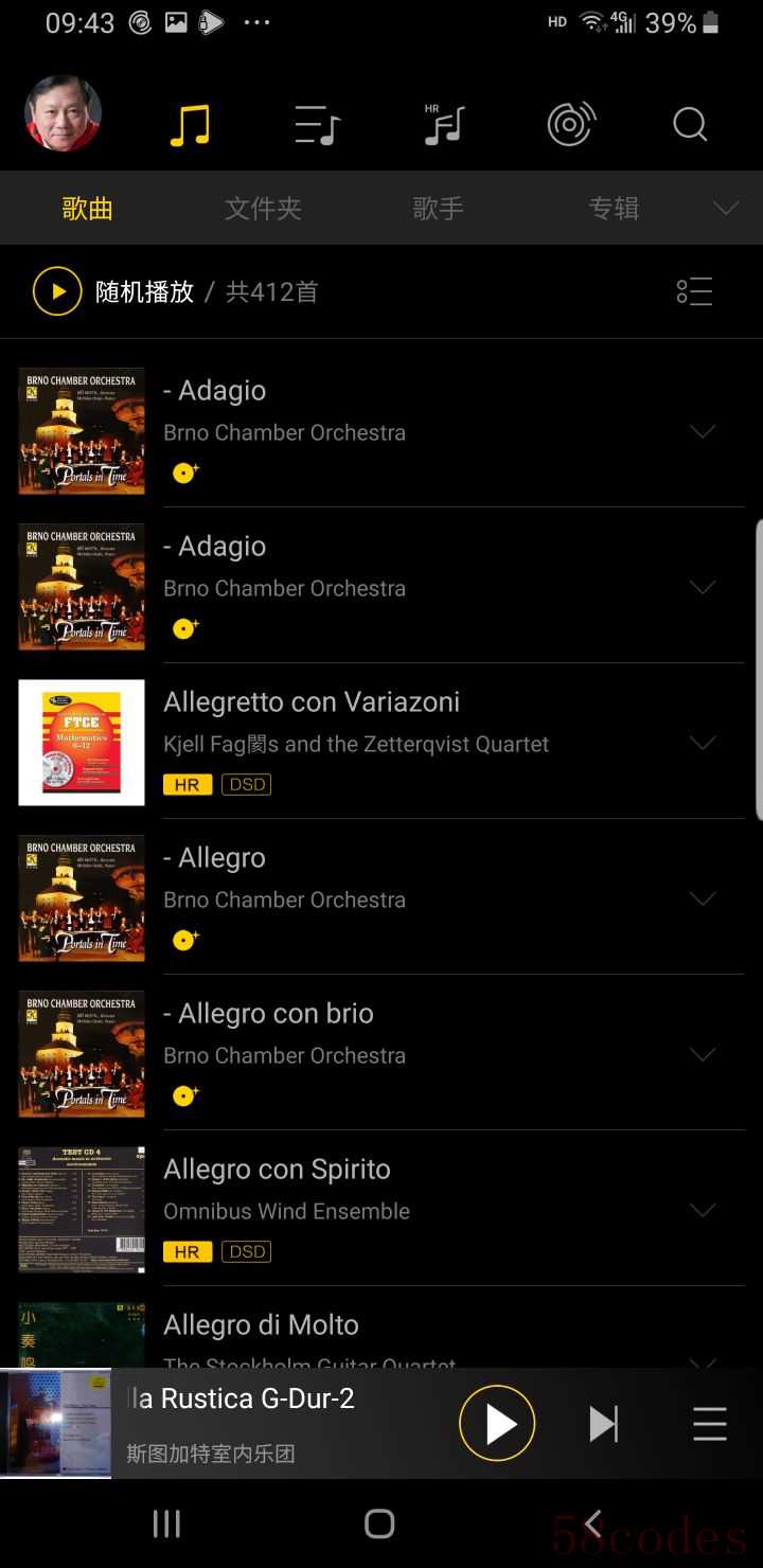 手机安装一个播放软件,它可以兼容无损音乐格式,包括DSD256。“海贝”播放器不错。另“USB Audio Player PRO ”播放器也不错,因为它们能兼容高比特率的音乐文件,同时DSD256也兼容。