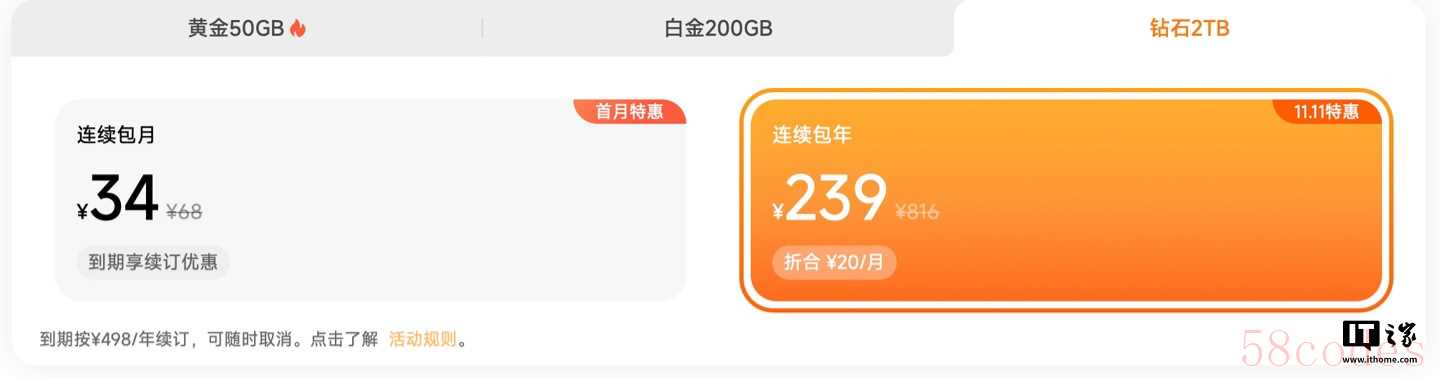 IT之家获悉,购买连续包年会员方案可享受折扣优惠,优惠价格仅限首年,到期后以非活动价续订,同一账号只能参加一次活动。