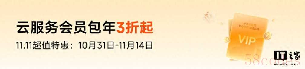IT之家 10 月 31 日消息,小米云服务会员现已开启双 11 限时优惠,连续包年 3 折起,活动时间为即日起至 11 月 14 日。