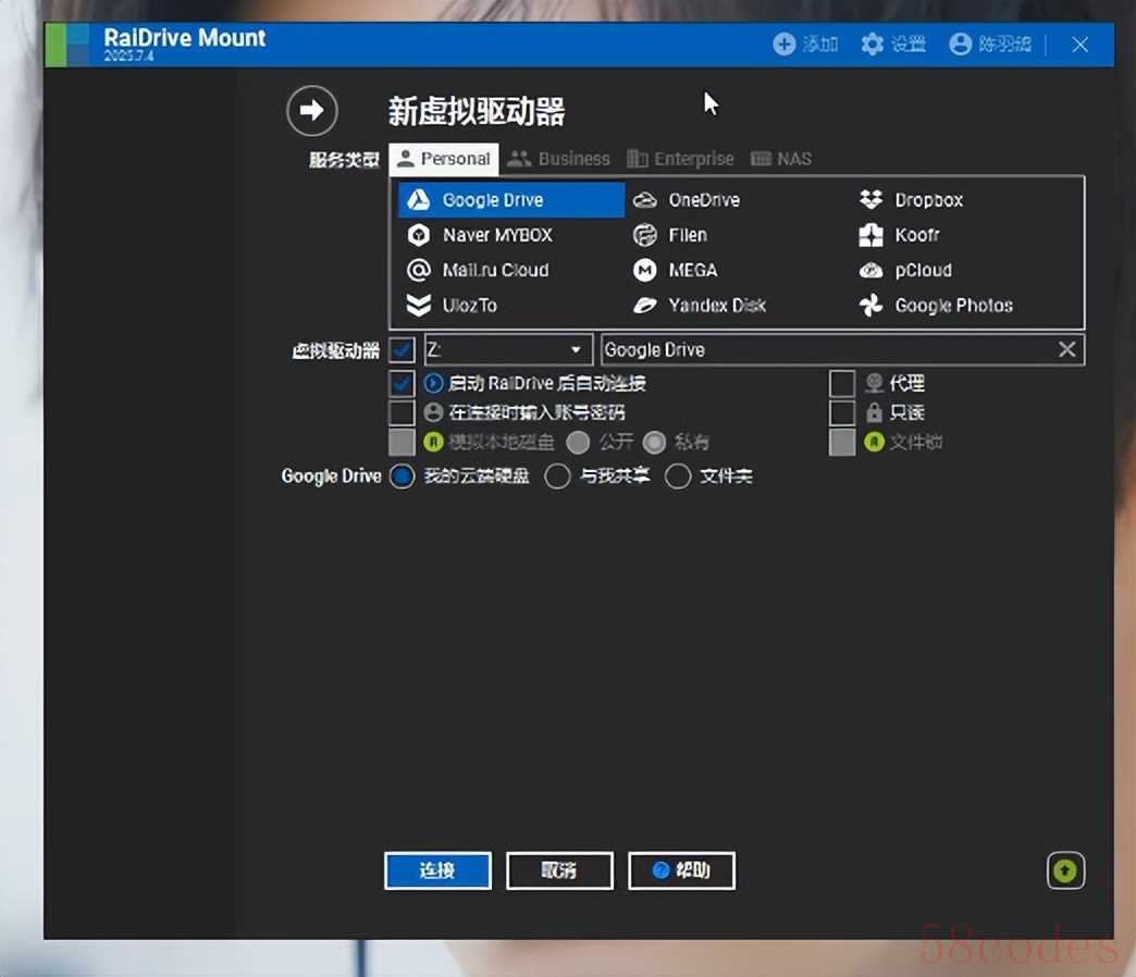 打开后点击添加,可以看到里面有很多种支持的网络网盘