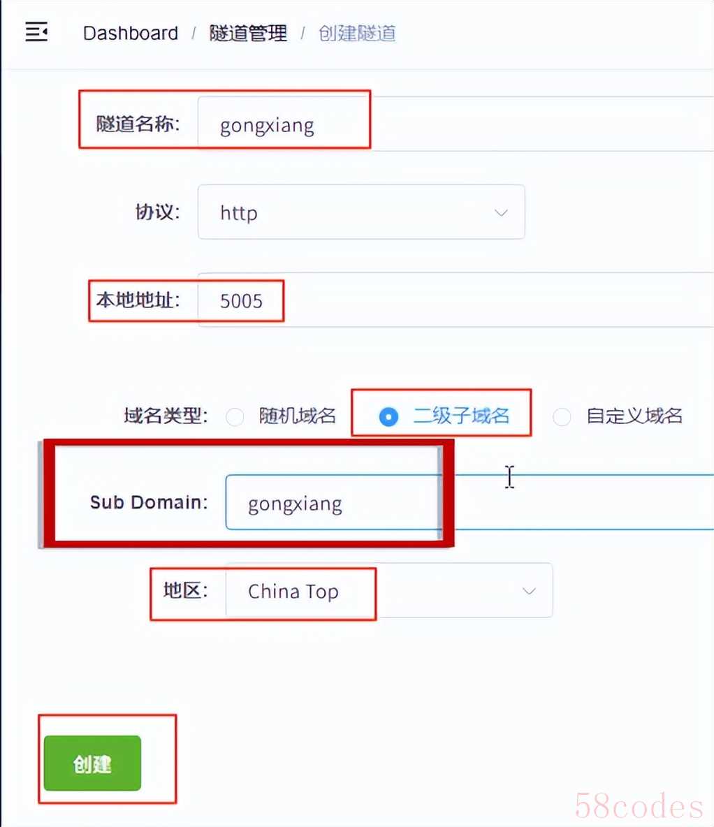 - 隧道名称:可自定义,注意不要与已有的隧道名称重复