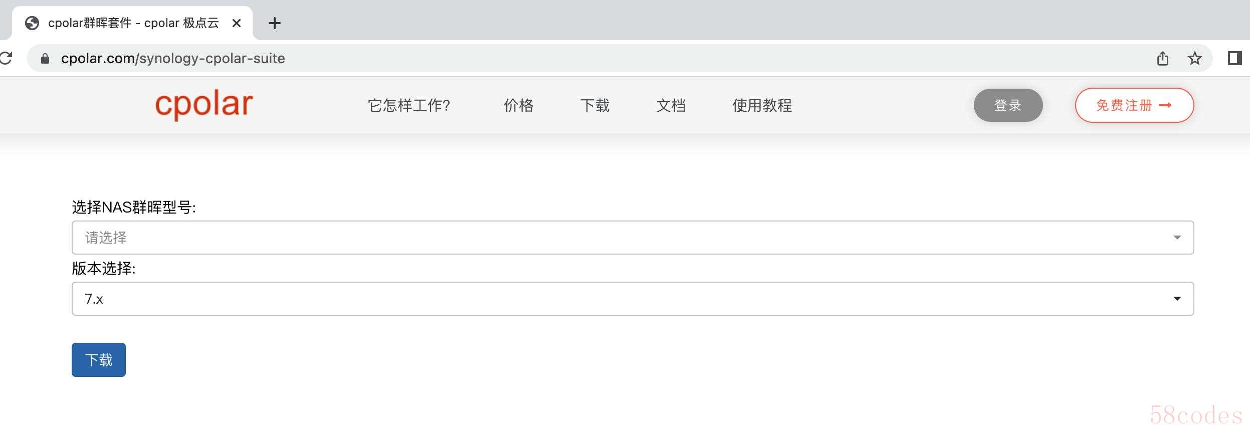 cpolar 提供了群晖安装的套件,点击下面Cpolar群晖套件下载地址,下载相应版本的群晖Cpolar套件,如果找不到对应的型号,可以选择相近版本型号套件。