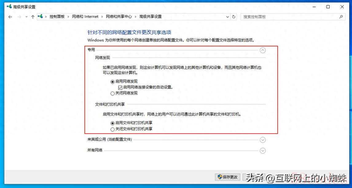 不想使用微信进行文件的传送,本想使用Windows 10家庭组来进行家里的电脑之间文件的拷贝传送。在Windows 10中已经没有找到相关的功能界面。那就使用Windows 10自带的共享文件功能来解决这个问题。完成相关的设置,无论是家里多台电脑共享电影,还是办公室同事互传资料,3分钟设置,一劳永逸!按照下面的步骤,完成共享设置1.开启网络共享基础打开Windows 10系统,依次开启: 控制面板 > 网络和Internet>网络和共享中心 > 更改高级共享设置在专用下方必开选项:✅ 启用网络发现✅ 启用文件和打印机共享✅ (推荐) 启用密码保护共享 (配图:高亮这3个选项)